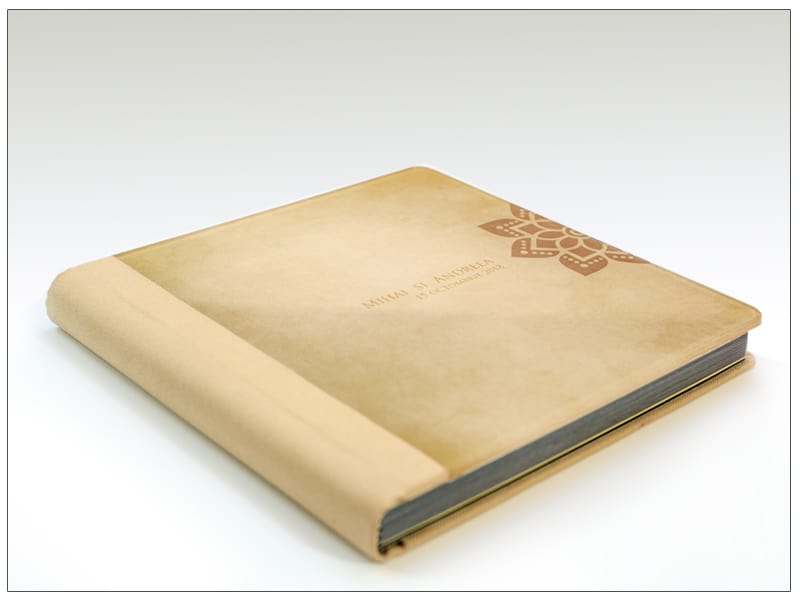 Ne puteti trimite o fotografie pentru coperta din sticla acrilica sau puteti alege din modelele noastre. Spatele este din piele naturala pe care de asemenea o puteti selecta din mostrarul de culori.