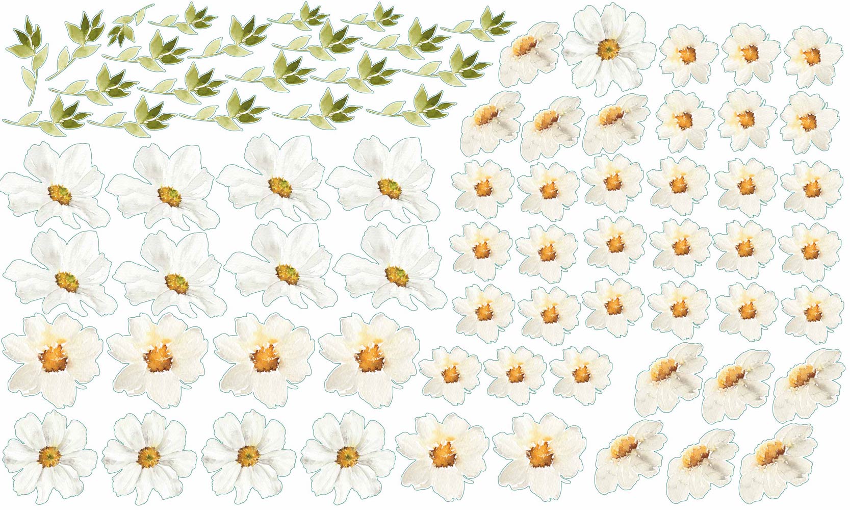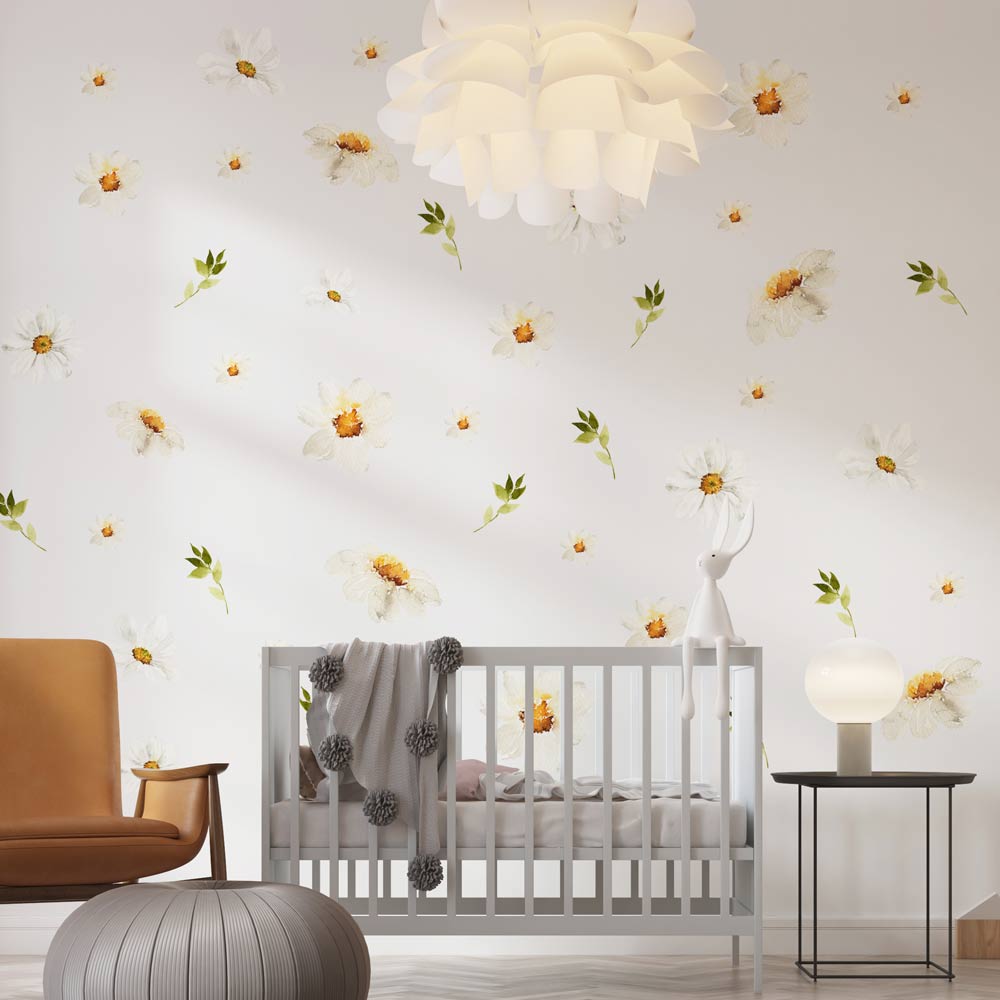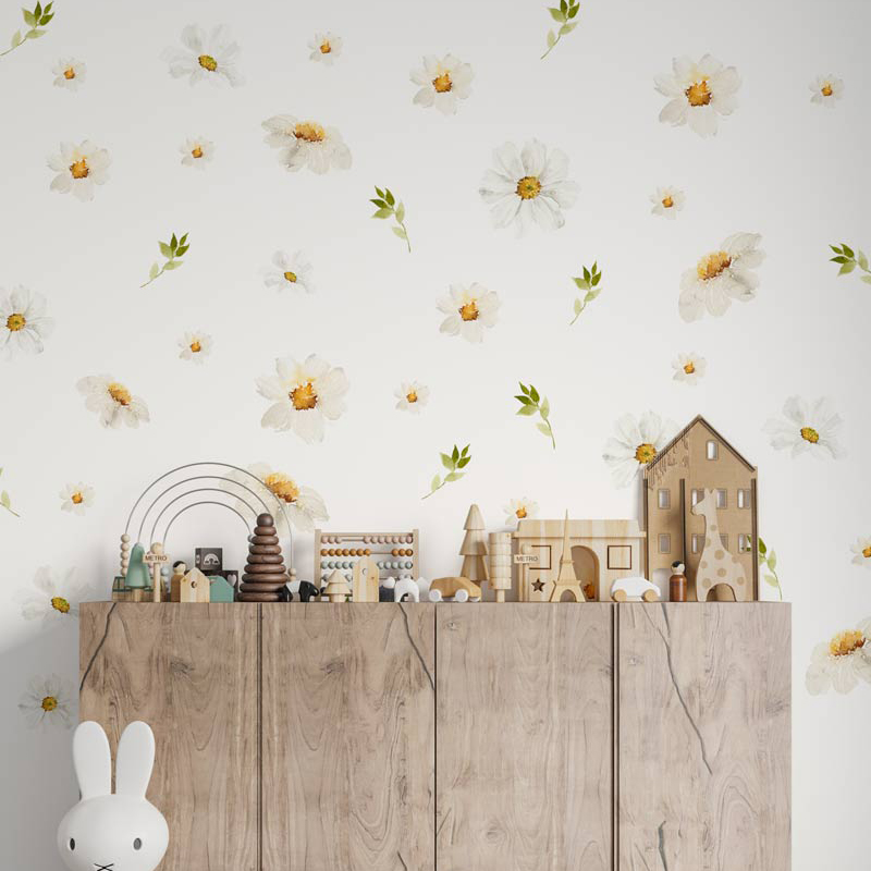 Sticker Textil de Perete pentru Copii | Pure Daisies – Margarete în stil watercolor (acuarelă).