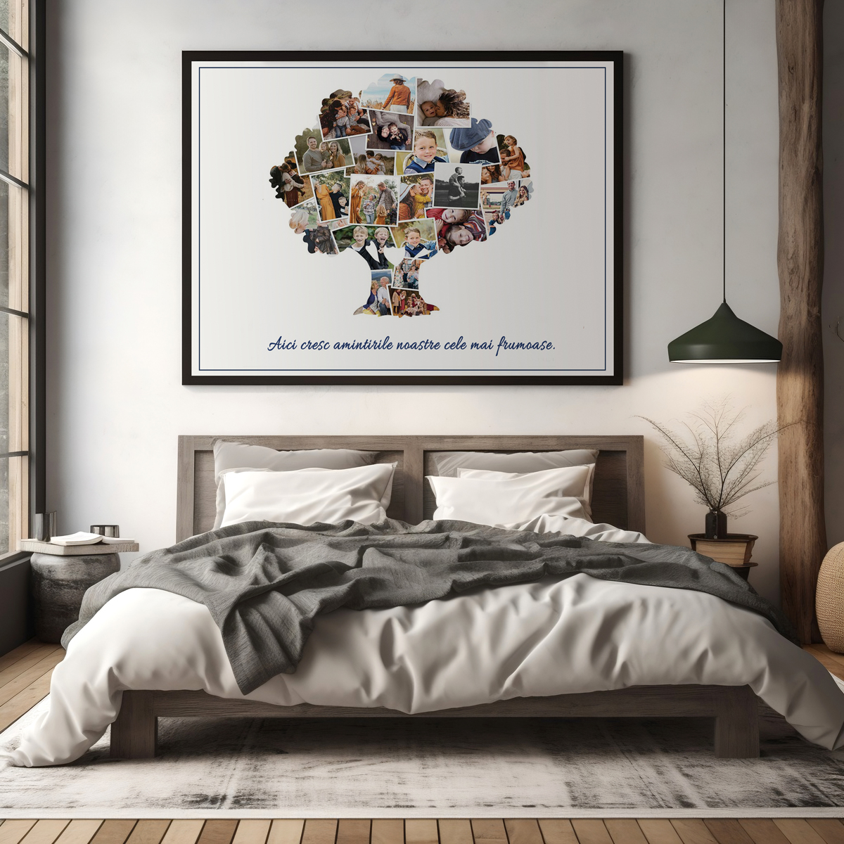 Tabloul personalizat colaj sub forma de copac "Family Tree", spune povestea familiei tale. Alege 23 fotografii care vor spune aceasta poveste. Poți alege fotografiile din colecția personală sau de pe facebookul unui prieten iar noi ne asiguram că indeplinesc toate condițiile pentru ca tabloul tău sa fie perfect. Dacă vrei sa scriem un cuvânt sau un mic text peste imaginea ta, te rugăm sa completezi câmpul de personalizare.