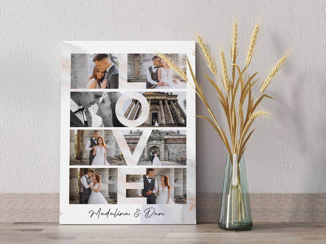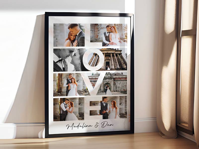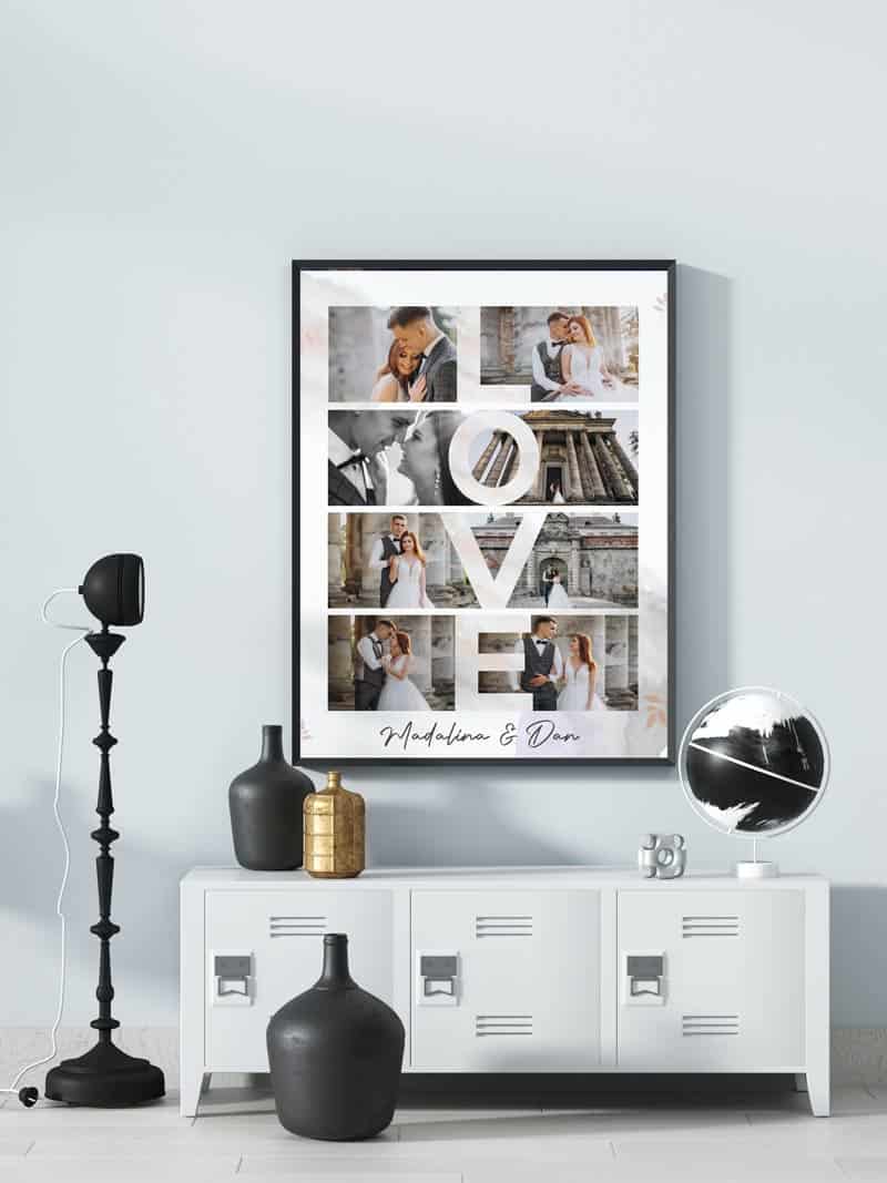 Tabloul personalizat cu fotografiile tale | LOVE, este un cadou ideal pentru prieteni, colegi de birou, parinti sau bunici si de ce nu chiar si pentru tine. Alege 8 fotografii, le poti folosi pe cele din contul de Instagram sau Facebook, iar noi ne asiguram că indeplinesc toate condițiile pentru ca tabloul tău sa fie perfect. Dacă vrei sa scriem un cuvânt sau un mic text peste imaginea ta, te rugăm sa completezi câmpul de personalizare.