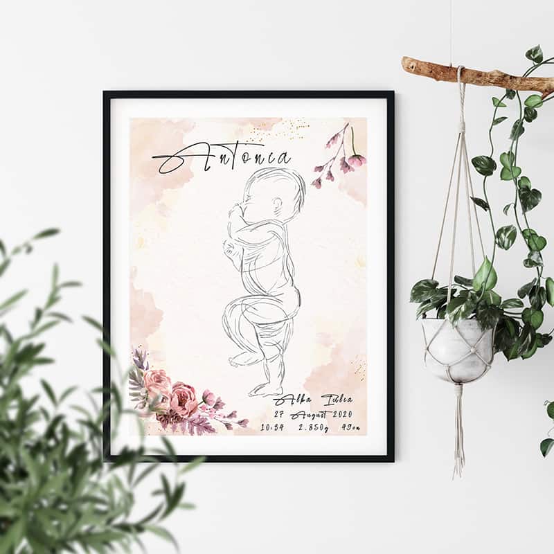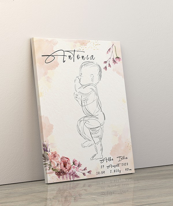 Bebelusul tau este o minune iar minunea nasterii sale este transpusa in Tabloul Baby Birth 1:1 | Watercolor Peony pentru a pastra emotiile primei imbratisari vii de-a lungul timpului. Tabloul este unicat, fiind personalizat cu dimensiunea exacta a lungimii sale din ziua nasterii. Este de asemenea personalizat cu numele sau, al localitatii, cu data si ora nasterii.