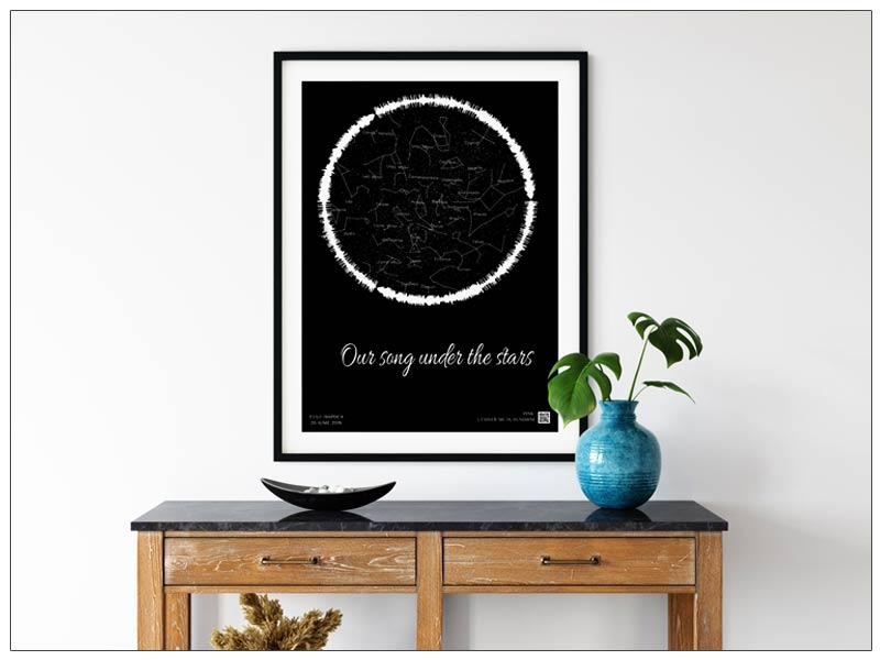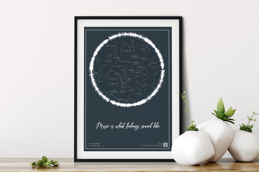 Tablou personalizat cu poziția stelelor și a constelațiilor și cu melodia ta de suflet.