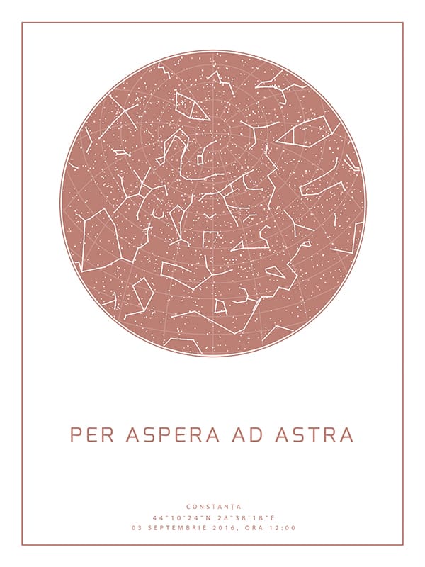 Un cadou cu adevărat unic și personal. Tablou stelar cu Harta poziției stelelor așa cum a arătat într-un anumit moment special în timp. Vă mai aduceți aminte acel moment, în care ați simțit că lumea stă în loc? Cu siguranță fiecare dintre noi retrăiește acele clipe citind aceste rânduri. Tabloul combină exactitatea astrofizicii cu eleganța și unicitatea artei.
