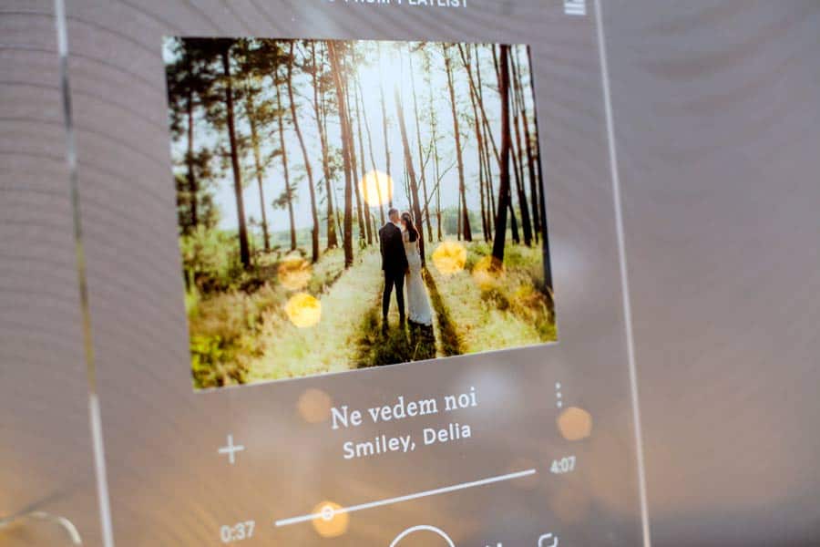 Fotografia va fi incadrată in sound wave-ul melodiei preferate. De asemenea, tablou se personalizează cu un cod Spotify pentru ca melodia să poate fi redată cu ajutorul aplicației Spotify.