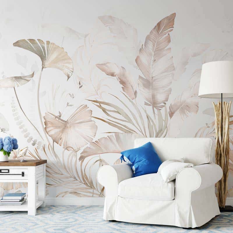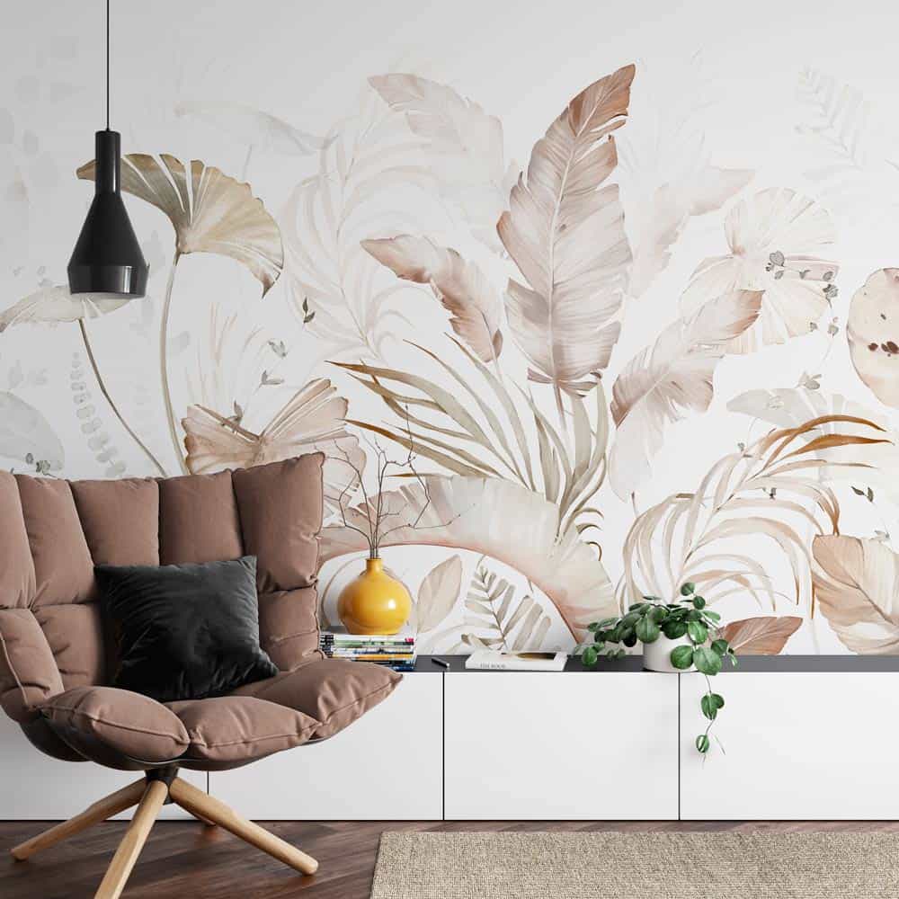 Decorează-ți pereții și adu la tine acasă un decor unic de natură -Tapet Premium Dreamy Tropics - Decor in tonuri crem și aurii inspirat din luxuriantele păduri tropicale. Tapetul "Dreamy Tropics" pare "pictat" în tușă de acuareală și poate fi un decor deosebit pentru dormitoare sau living și de ce nu, chiar în camera copiilor.