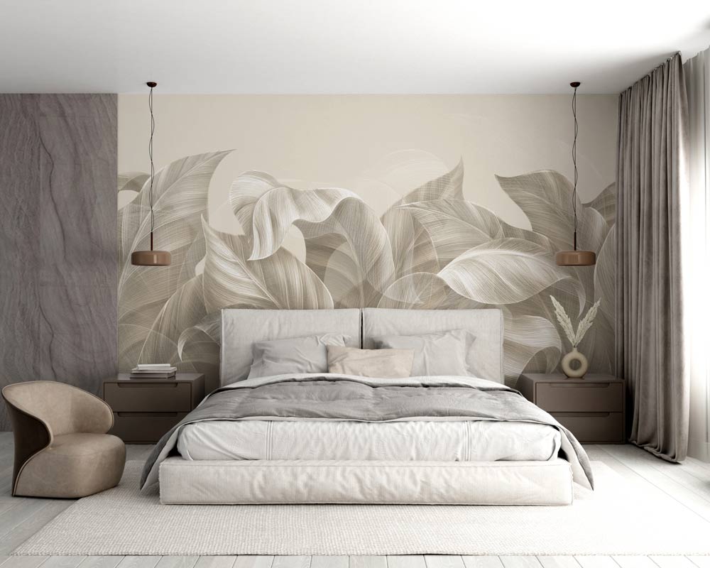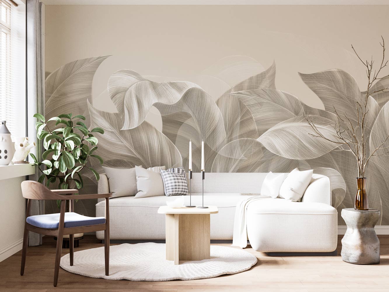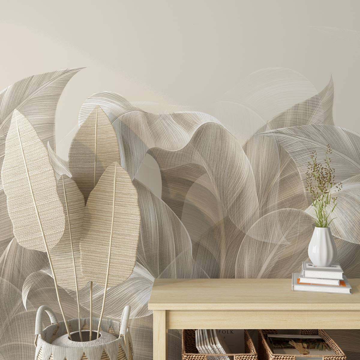 Alege Silken Tropical Leaves Beige pentru un decor tropical modern, elegant și rafinat!✨