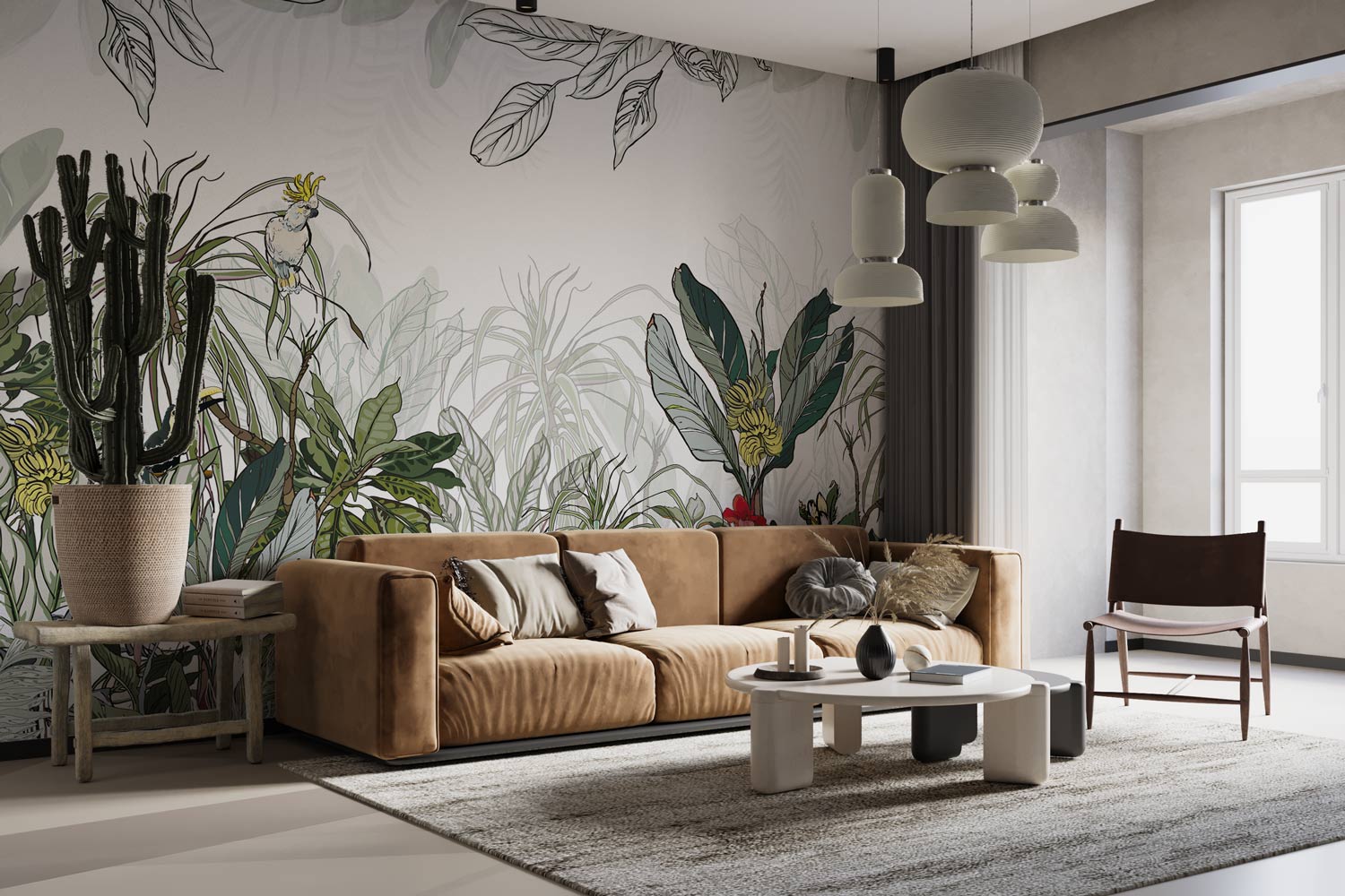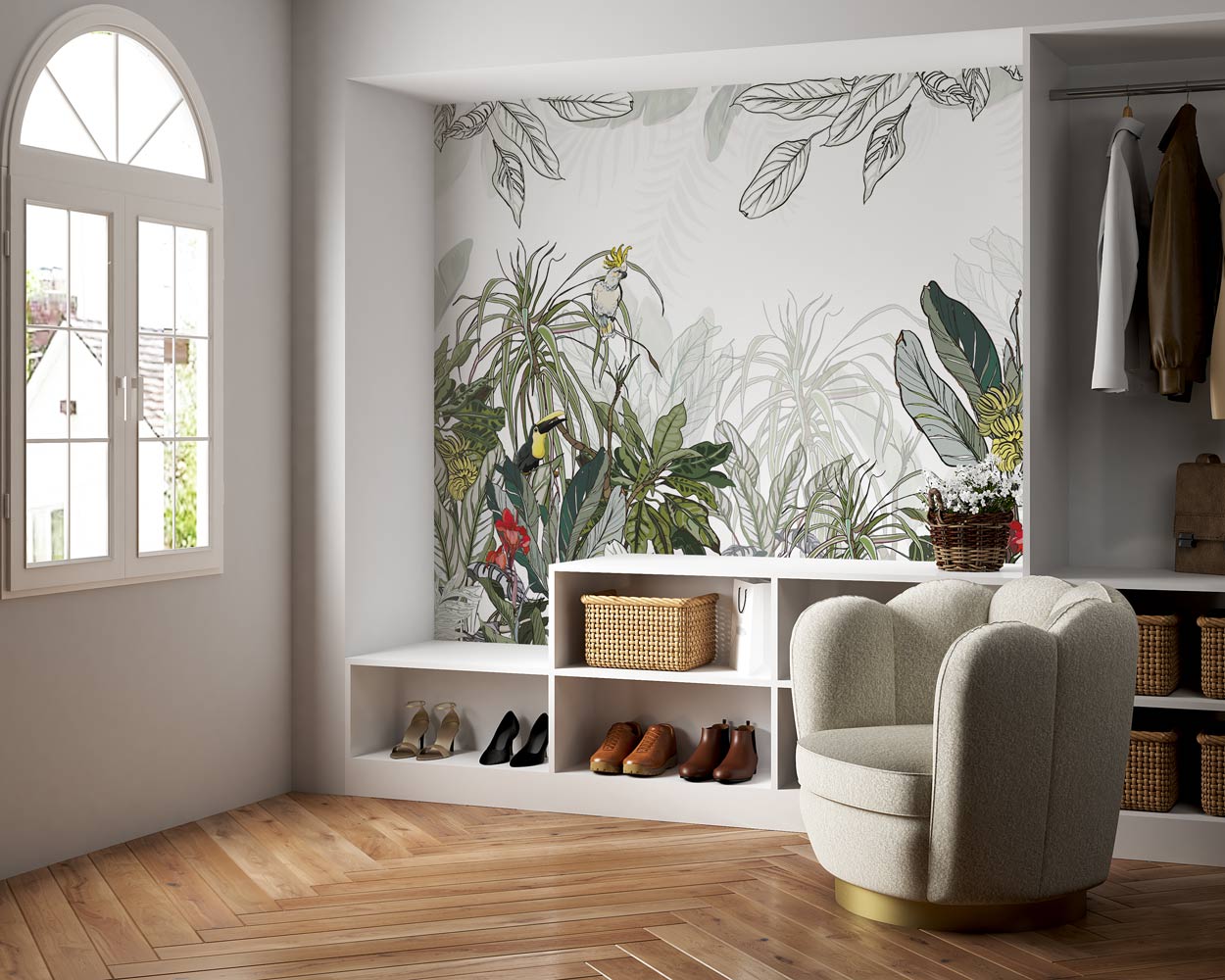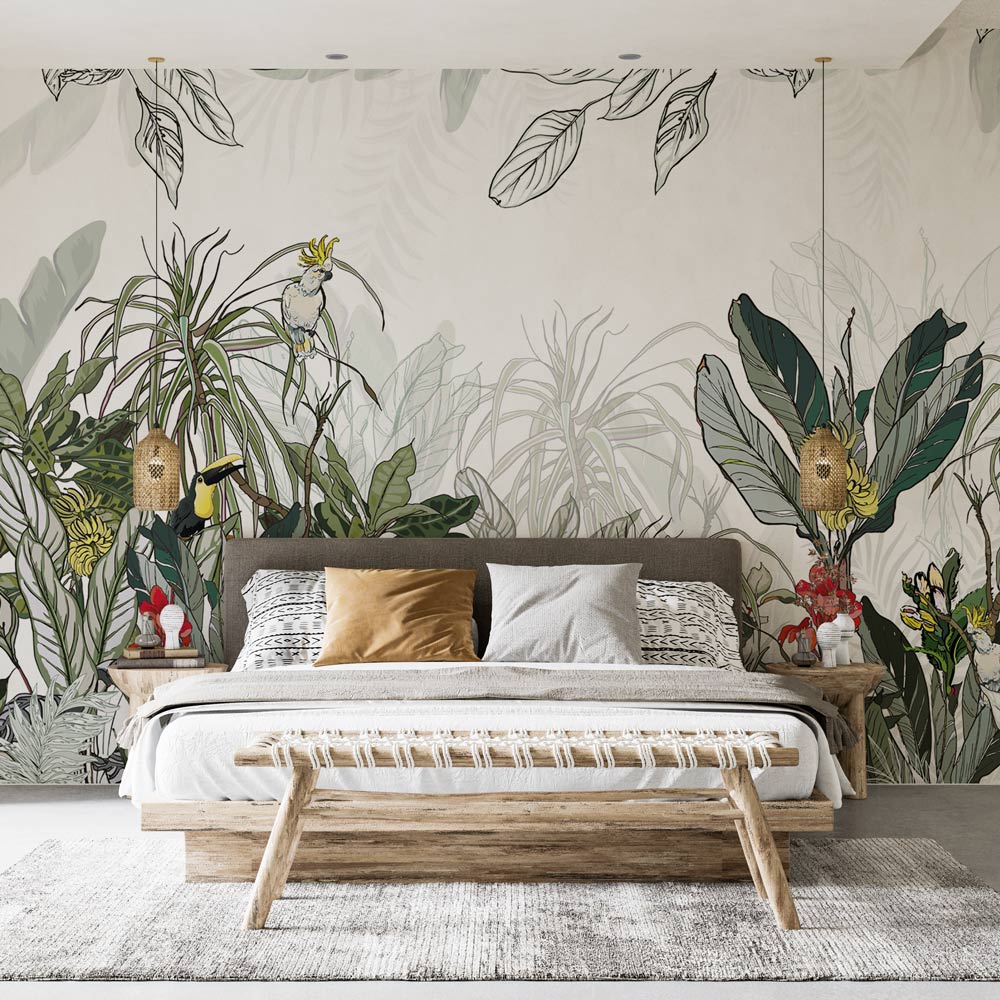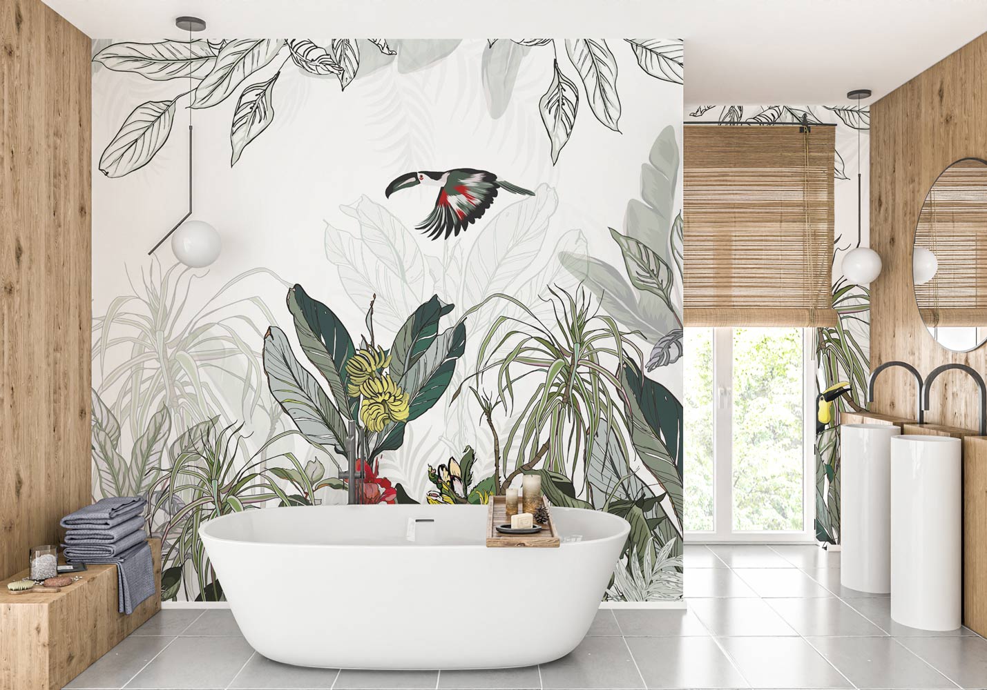 Decorează-ți pereții și adu la tine acasă un decor unic tropical - Tapet Verde Selva, un tapet vibrant care aduce esența junglei tropicale direct în inima casei tale, printr-un design exuberant cu frunze verzi și papagali tucano colorați. Ai transport gratuit la comenzile mai mari de 500 RON. Alege tapetul din oferta Icopix, cu un model unic. Ușor de aplicat. Decor inedit.