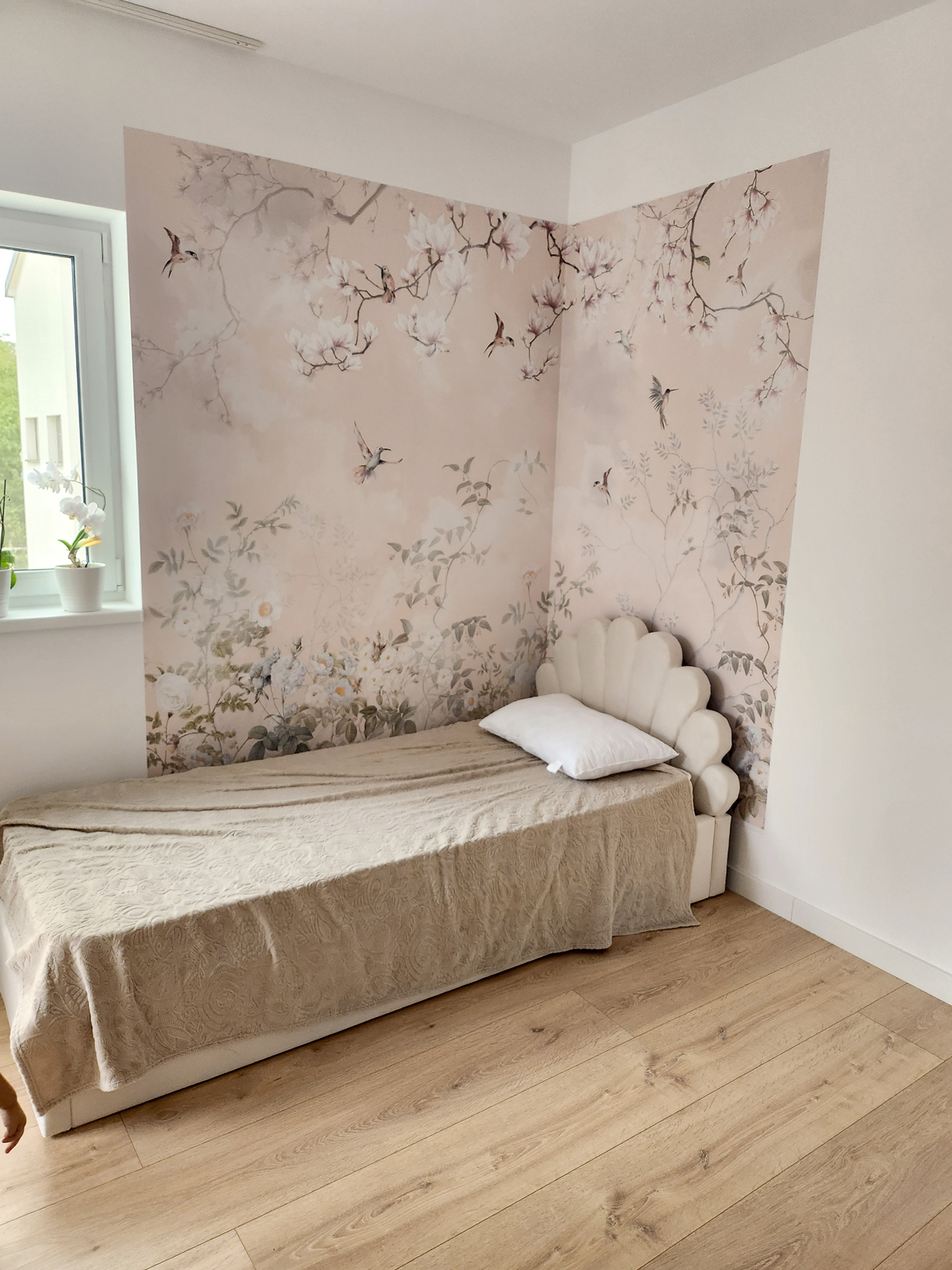 Tapetul Whisper Thin Wings, decor cu flori delicate de magnolie si trandafiri, ca o gradina de vara, poate fi un decor deosebit pentru dormitoare sau living sau de ce nu, chiar și pentru camera copiilor. Intensitatea culorilor se poate ajusta în funcție de preferințele voastre. De asemenea, fundalul se poate modifica în diverse nuanțe sau tonuri. Designul său unic aduce natura în interior, fiind perfect pentru a adăuga o notă de calm și rafinament în diverse spații, de la dormitoare și băi, până la camerele copiilor. Ușor de Aplicat. Decor inedit. Rezistente la umezeală. Culori Vibrante.