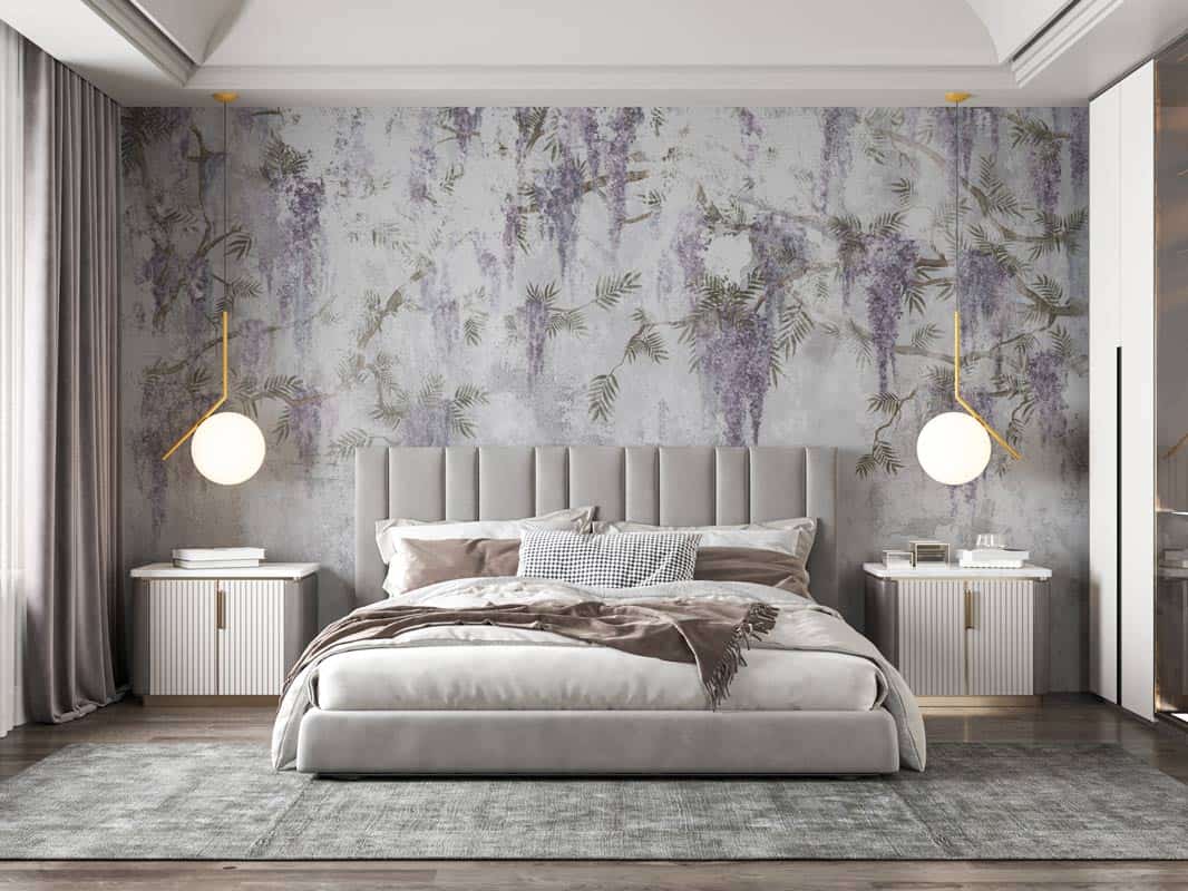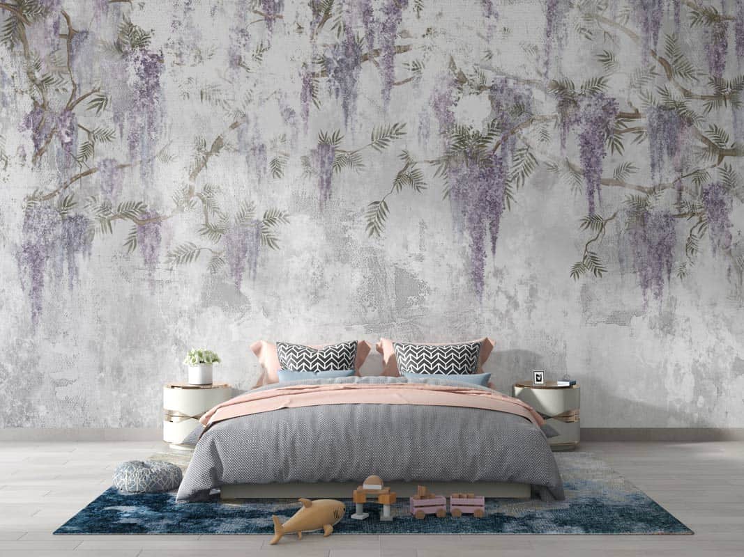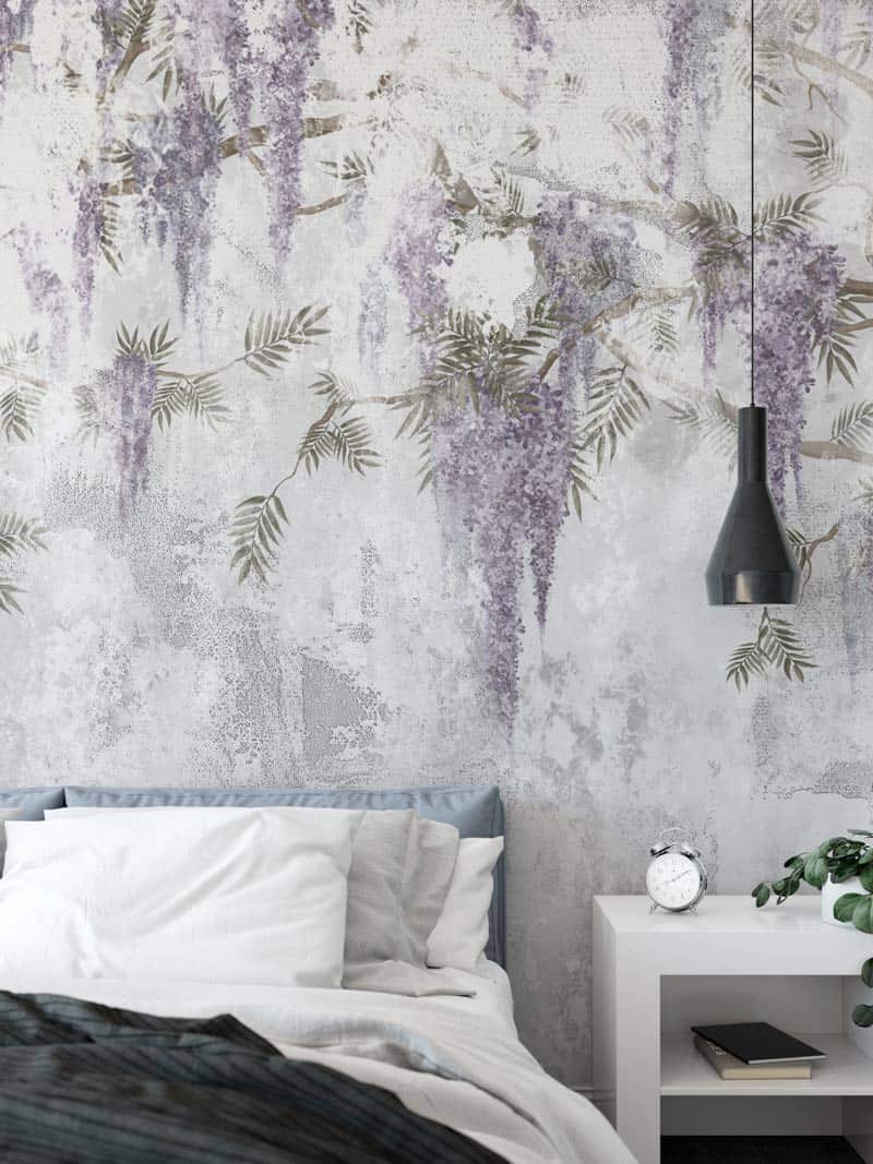 Decorează-ți pereții și adu la tine acasă un decor unic de natură -Tapet Premium Wisteria Lane - Decor în tonuri neutre de gri cu flori delicate de glicină într-un design abstract. Tapetul Wisteria Lane poate fi un decor deosebit pentru dormitoare sau living și de ce nu, chiar în camera copiilor.